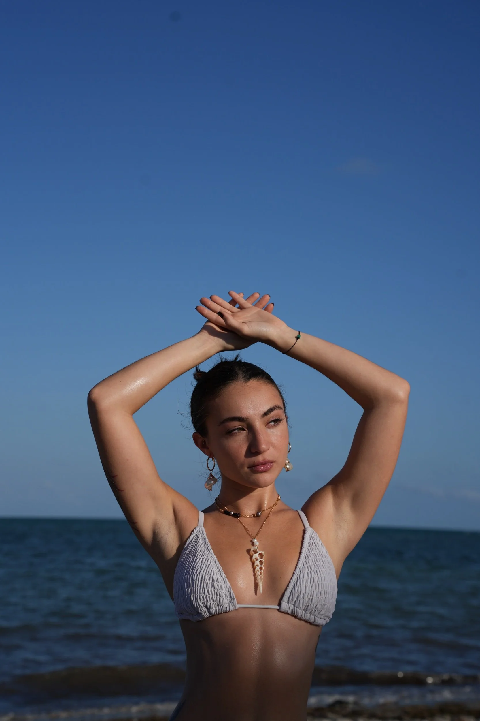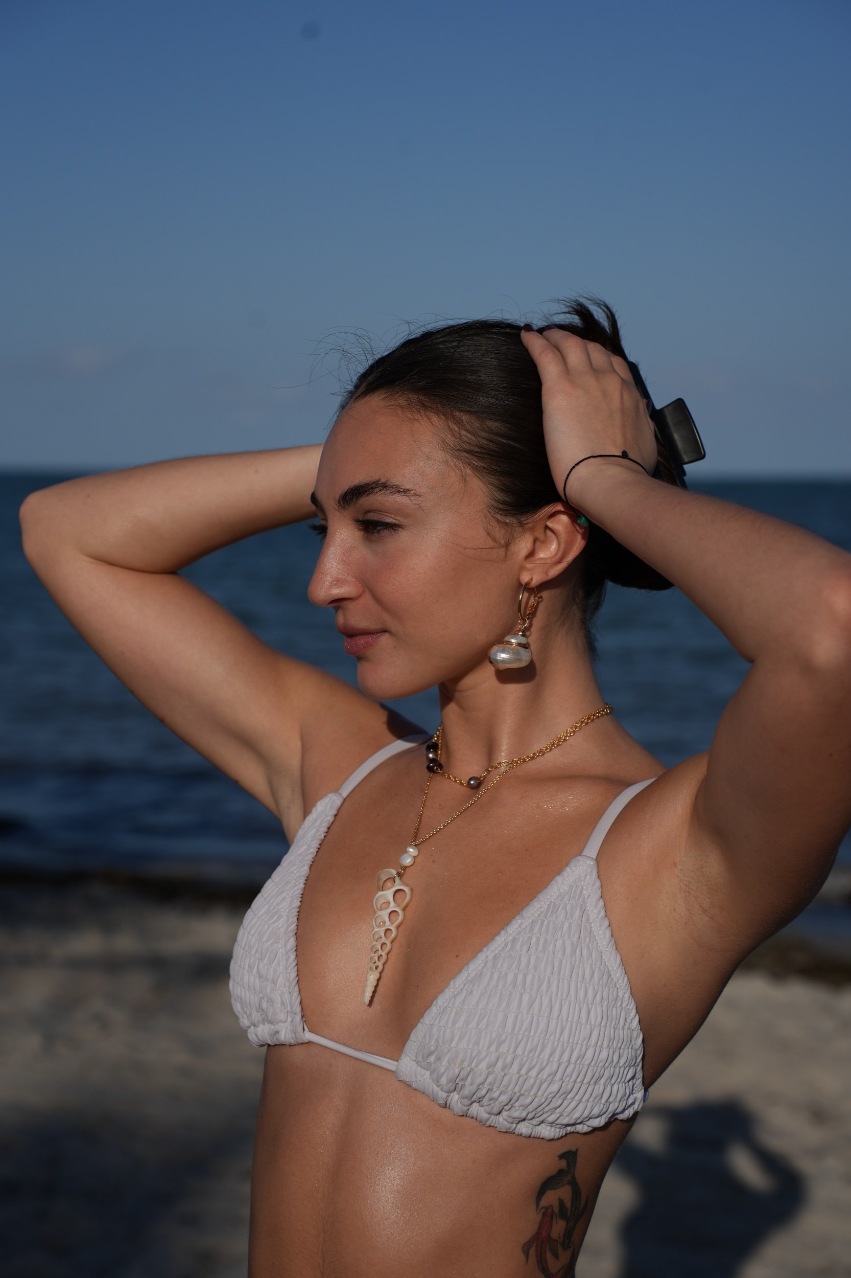 Suspended in gold, it becomes a small talisman of natural rhythm, expansion, and ocean intuition.